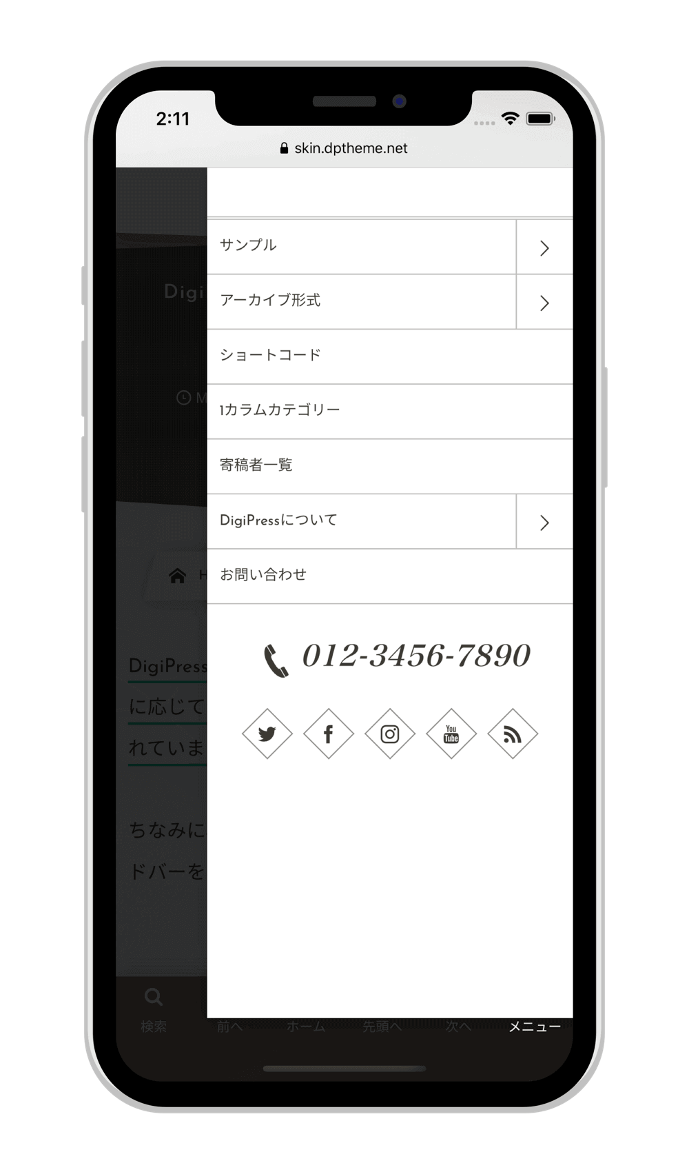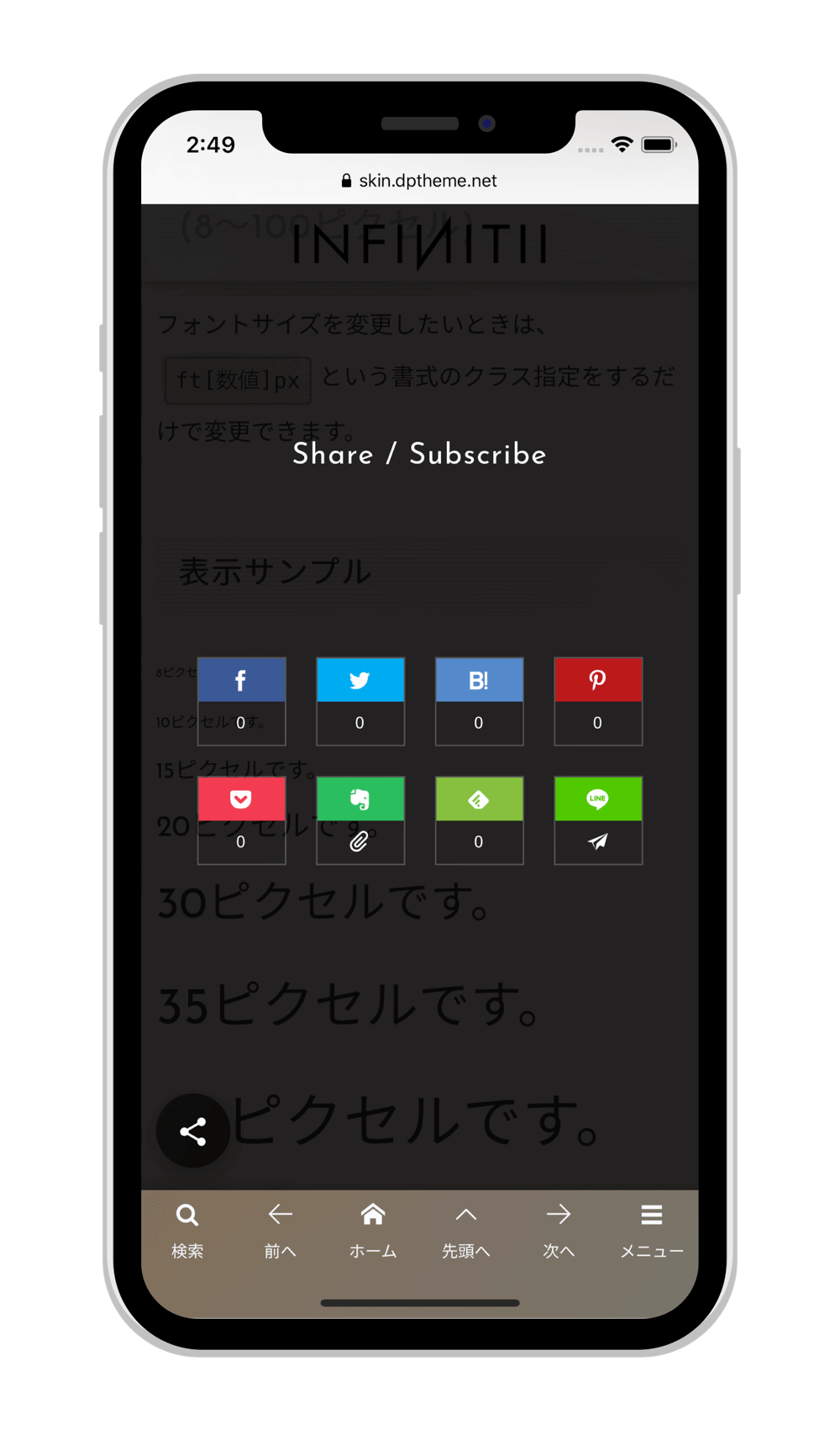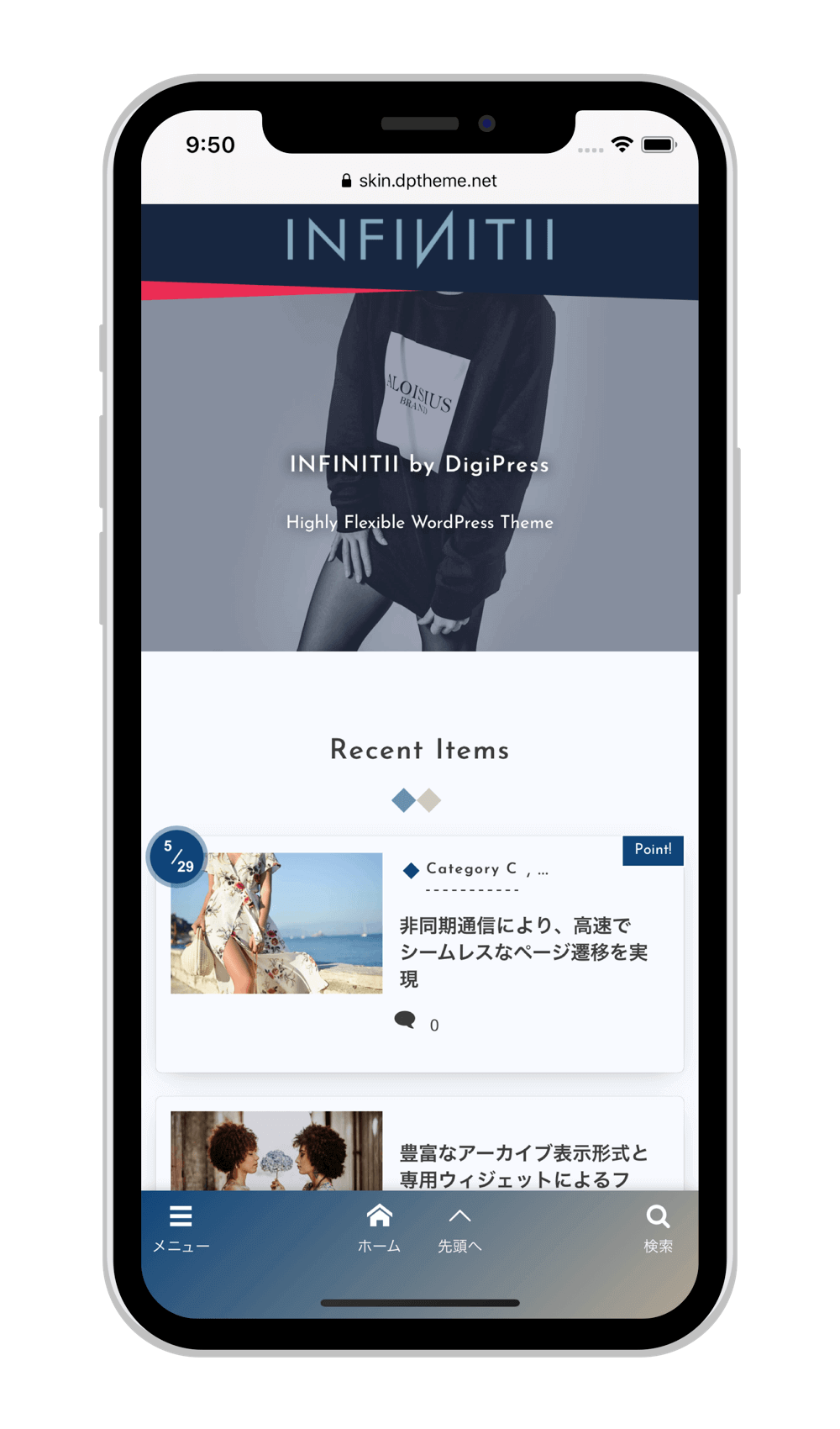 他の一般的なレスポンシブデザインにしか対応していないテーマと違い、PCからのアクセスとはテーマ自体が異なるため、単純なレスポンシブ表示では到底実現できない究極のモバイル要件にも対応しています。
