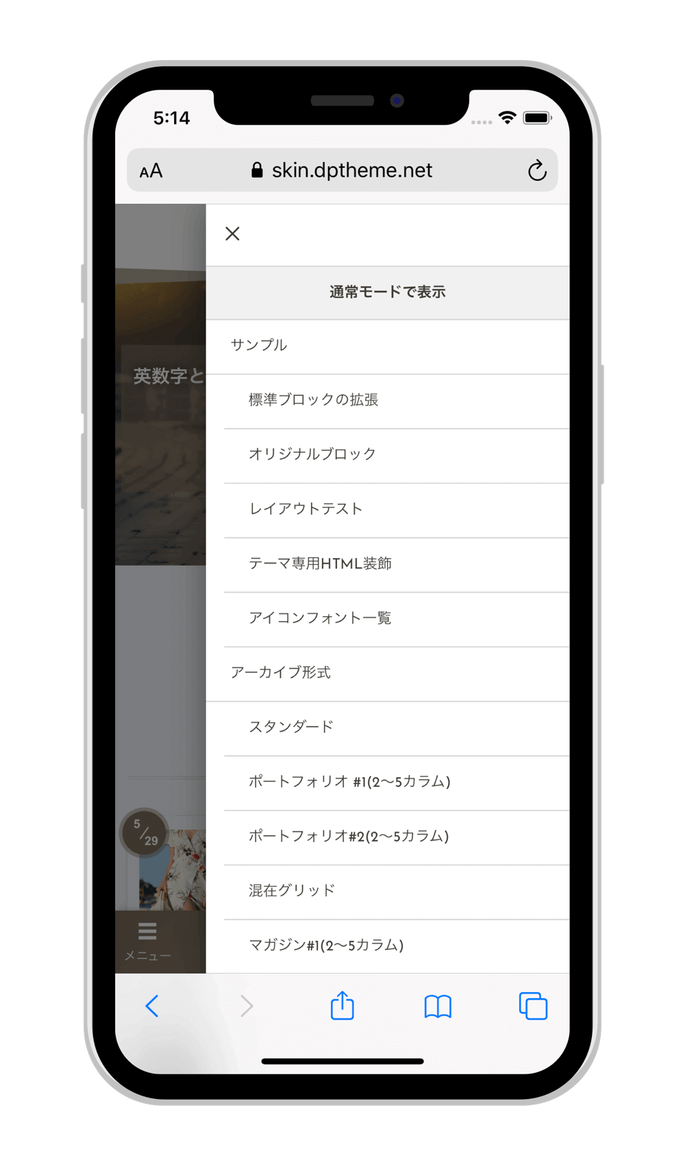 スマートフォンではモバイルに特化して無駄なコードや情報を省き、軽量化、最適化されたモバイル専用テーマにて表示します。